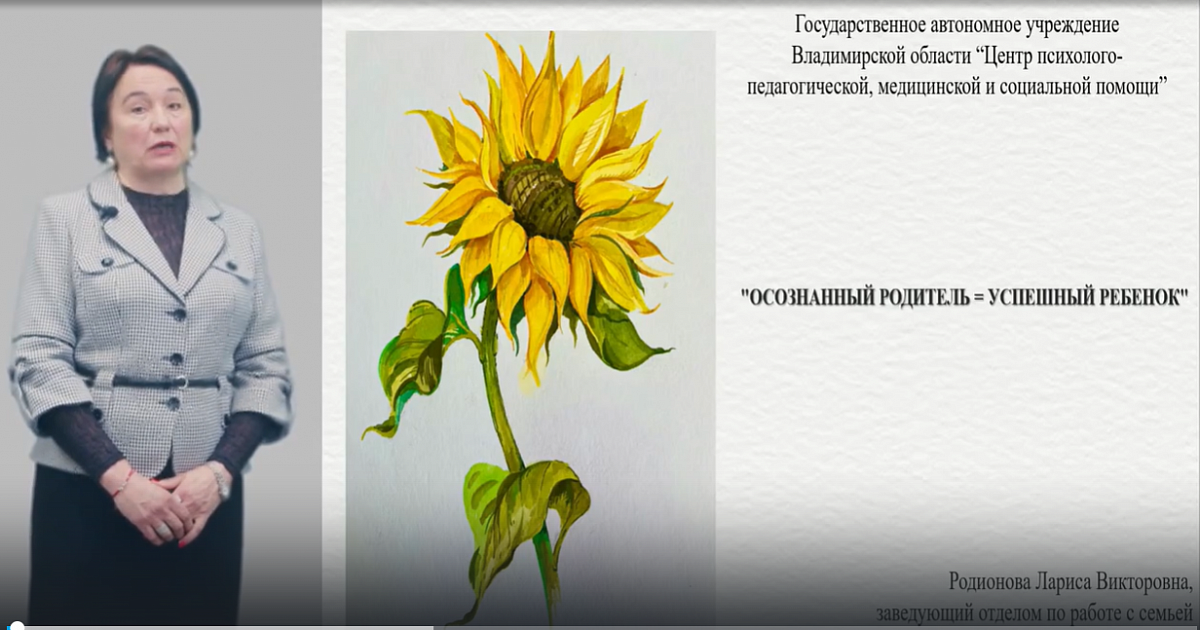 Предлагаем посмотреть видеолекцию заведующего отделом по работе с семьей и укреплению семейных ценностей ГАУ ВО "Центр психолого-педагогической, медицинской и социальной помощи" Ларисы Викторовны Родионовой на тему "Осознанный родитель=Успешный ребенок"