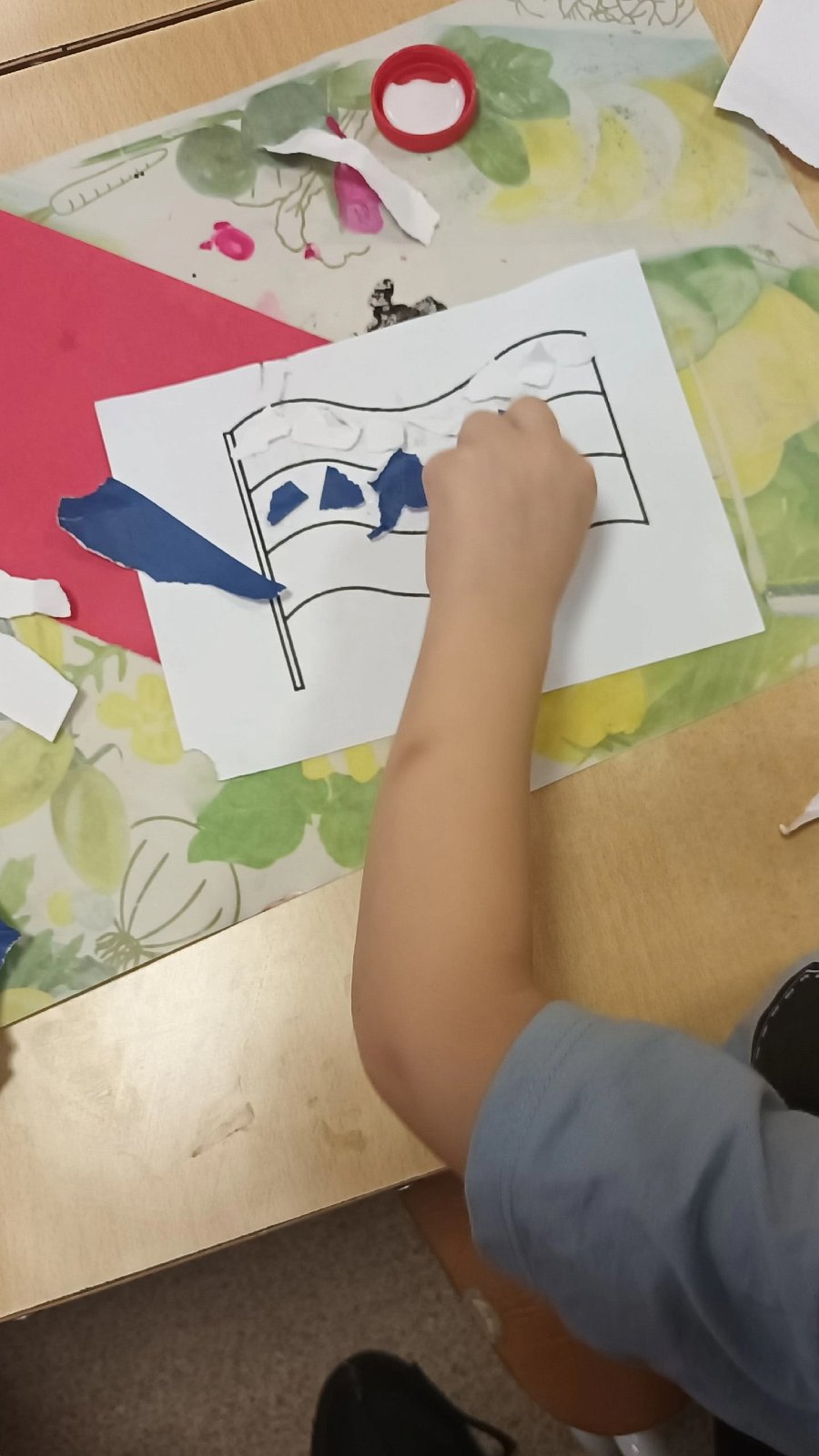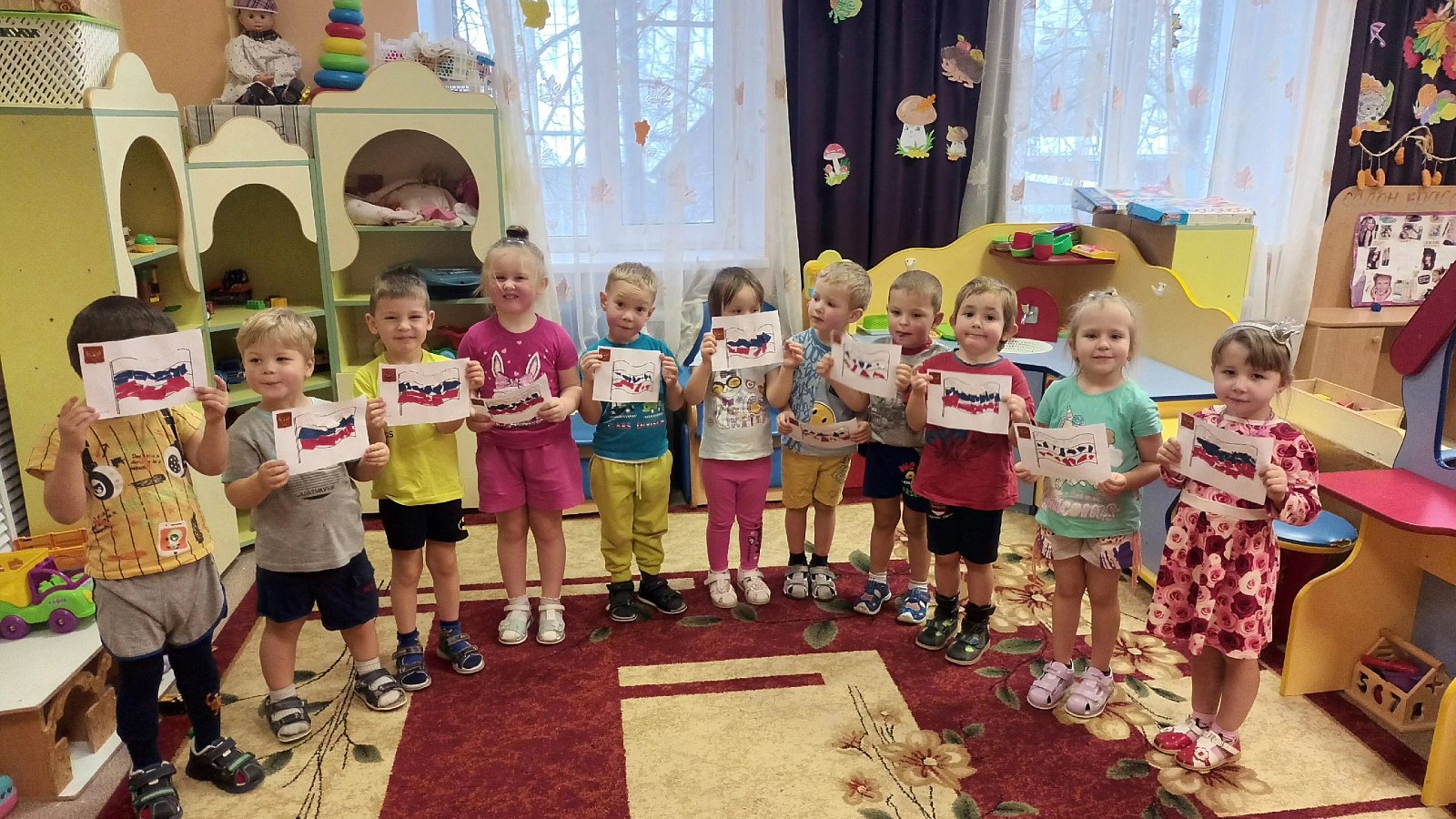 На протяжении 30 лет на территории России 30 ноября отмечается День Государственного герба Российской Федерации и мы с ребятами двухвозрастной группы (3-5 лет) "Почемучки", воспитателями которой являются Агафонова Е.В. и Раусова Ю.А. решили не нарушать праздник и в технике "Обрывная аппликация" сделали флаг нашей страны, а также наклеили рядом герб