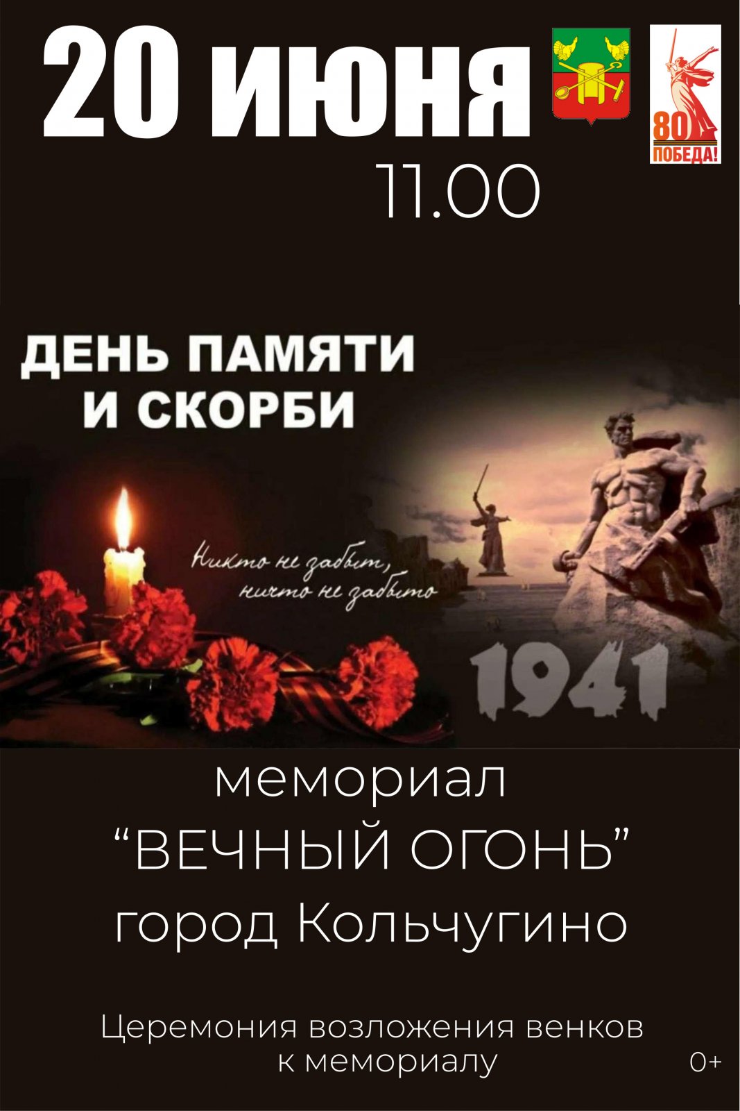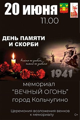 20 июня в 11:00 часов состоится церемония возложения венков к мемориалу "Вечный огонь" , посвященная Дню памяти и скорби