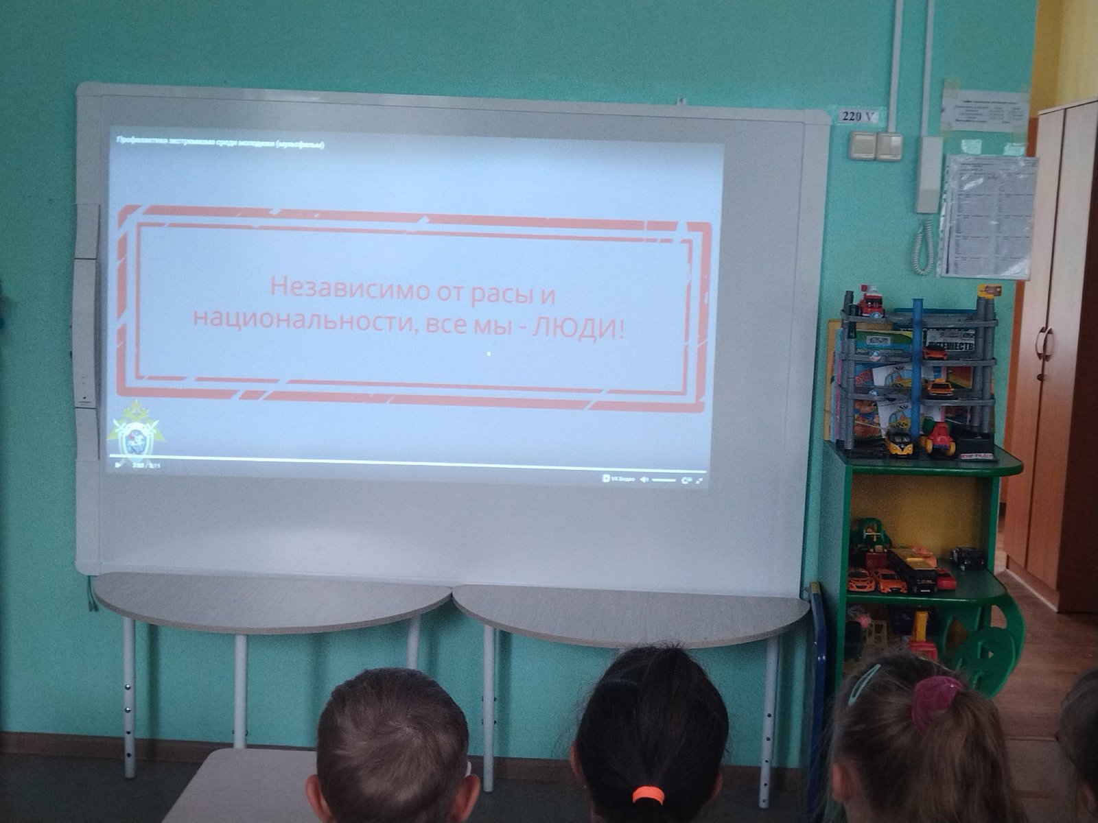 В рамках работы по профилактике распространения неонацизма и радикального экстремизма в старших группах ДОУ воспитанники познакомились с мультипликационным фильмом, подготовленным следственным управлением Следственного комитета Российской Федерации "Профилактика экстремизма среди молодежи".
