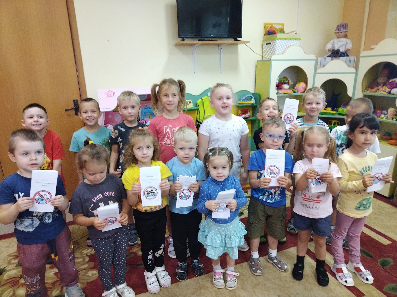В рамках проведения акции "Вода - источник повышенной опасности" ребята логопедической группы 5 "Речецветик" подготовили и вручили буклеты на тему: "Будьте осторожны на воде" детям группы 6 "Почемучки". Материал предназначен для предостережения об опасностях на водоемах и ознакомления с правилами поведениями на общественных пляжах.