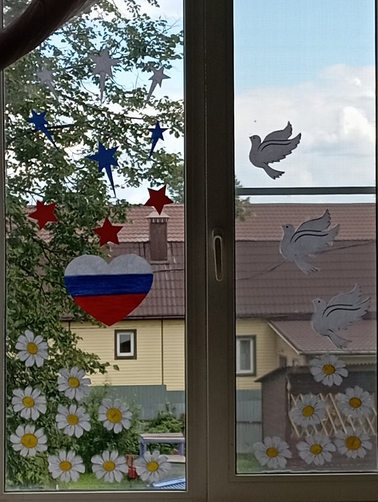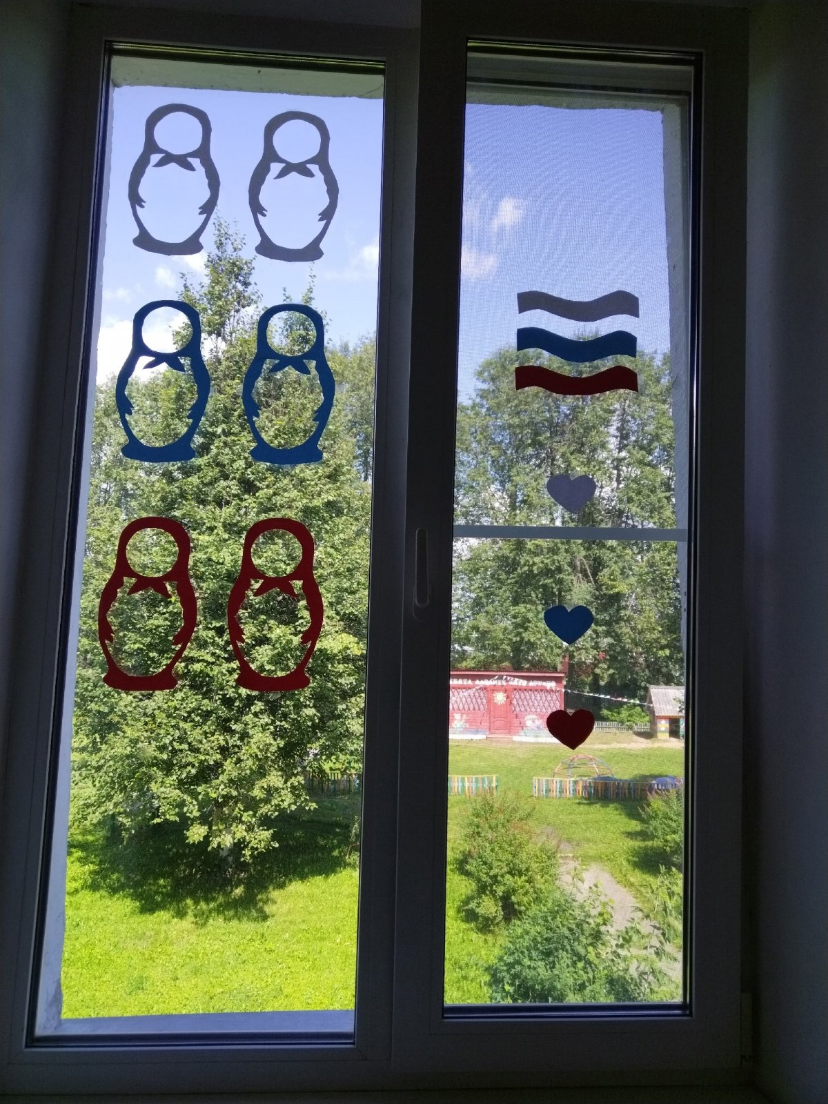 Наши педагоги и воспиианники оформили окна детского сада патриотическими композициями с использованием цветовой символики государственного флага России.